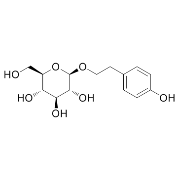 红景天苷(100μM)抑制脯氨酰内肽酶(PEP)活性(10.6±1.9%)。脯氨酰内肽酶是一种在含有脯氨酸的神经肽酶的代谢中起作用的酶,其被认为参与学习和记忆[1]。红景天甙是在R. rosea L中发现的主要苯丙烷苷之一,在许多国家几乎每天作为营养补充剂食用,并且已被确定具有潜在的抗疲劳和缺氧,抗衰老和抗阿尔茨海默病活动。红景天甙可通过增加mTOR,p-mTOR和MyHC表达来改善肌肉营养[2]。将SH-SY5Y细胞暴露于0-600μMMPP+ 12-48小时,结果显示MPP +以浓度和时间依赖性方式导致细胞活力显着降低。将细胞用25-100μM红景天苷(Sal)预处理24小时,然后暴露于500μMMPP+另外24小时。红景天苷浓度依赖性地阻止MPP +诱导的细胞活力降低。膜联蛋白V / PI染色是检测凋亡细胞的常用方法。红景天甙显着降低MPP +处理的膜联蛋白V / PI染色细胞的数量,其浓度依赖性。凋亡细胞也可以通过Hoechst染色进行形态学评估。在Hoechst染色中,凋亡细胞的特征在于核大小减小,染色质浓缩,强荧光和核碎裂。红景天甙显着抑制MPP +诱导的SH-SY5Y细胞中染色质浓缩,强荧光和核碎裂的增加[3]。
