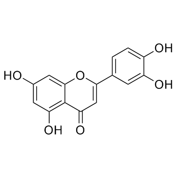 Luteolin中文别名:黄色黄素 ,3',4',5,7-四羟黄酮 ,片素, 3',4',5,7-四羟基黄酮, 木樨草素, 3',4',5,7-四羟基黄酮,檞片素