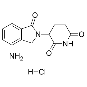 Lenalidomide hydrochloride 是一种有效的 TNF-α 抑制剂,具有抗血管增生作用。Lenalidomide 作为连接酪蛋白激酶 1A1 (CKIα) 与人 E3 连接酶 cereblon 的蛋白质稳态调节剂 (PHM) 起作用。