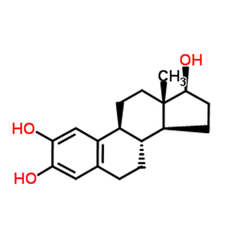 2-羟基雌二醇是17β-雌二醇的代谢产物,具有最低的雌激素活性,具有抗氧化作用,与DNA反应形成稳定的加合物,并具有遗传毒性。