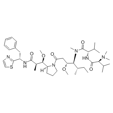 Dolastatin 10 是一种有效的从海洋软体动物Dolabela auricularia中分离出来的抗有丝分裂肽,抑制微管蛋白聚合。