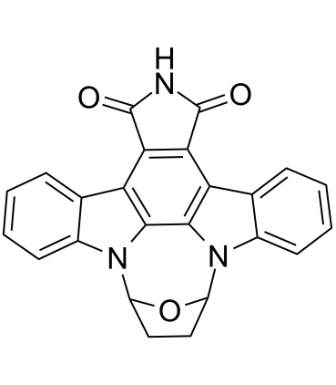 SB-218078 是一种有效的,选择性的且细胞可渗透的检查点激酶 1 (Chk1) 抑制剂,可抑制 cdc25C 的 Chk1 磷酸化,IC50 为 15 nM。SB-218078 对 Cdc2 (IC50 为 250 nM) 和 PKC (IC50 为 1000 nM) 的抑制作用较弱。SB-218078 通过 DNA 损伤和细胞周期停滞诱导细胞凋亡。