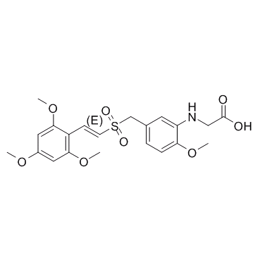 瑞格色替是一种 ATP 非竞争性的 PLK1 抑制剂,IC50 值为 9 nM, 选择性是 PLK2 的 30 多倍,是由OnCONOVA疗法开发的合成苄基苯乙烯基砜,是治疗慢性粒单核细胞白血病的III期临床试验。