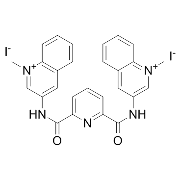 360A iodide是一种 G-四联体 (G-quadruplex) 的稳定剂,同时可抑制端粒酶 (telomerase) 的活性,在 TRAP-G4 实验中,IC50 值为 300 nM。