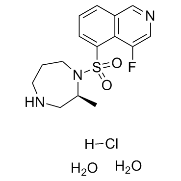 Ripasudil (K-115) hydrochloride dihydrate是有效的 ROCK 抑制剂,作用于ROCK1 和 ROCK2的 IC50 分别为 51 nM 和 19 nM,用作青光眼和眼内高压的治疗。