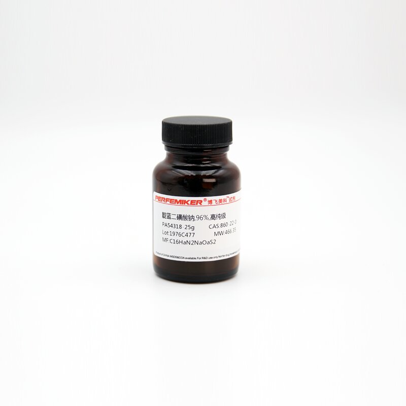 应用:氧化还原指示剂:在滴定分析中,通过颜色变化(pH 11.5-14.0时由蓝色变为亮黄色)指示反应终点,用于检测牛奶中的硝酸盐和氯酸盐。