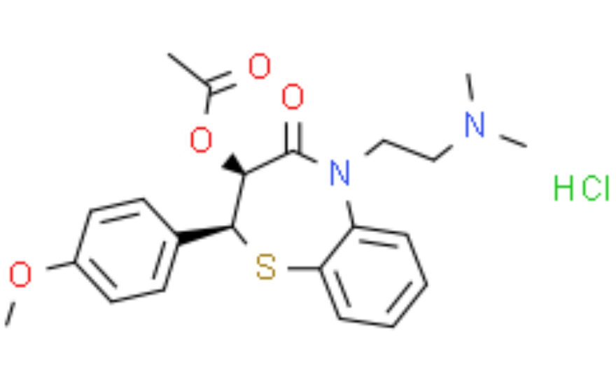 英文别名:Dilthiazem hydrochloride;BENZOTHIAZEPIN-4(5H)-ONE HYDROCHLORIDE;(2S,3S)-(+)-CIS-3-(ACETOXY)-5-(2-DIMETHYLAMINOETHYL)-2,3-DIHYDRO-2-(4-METHOXYPHENYL)-1,5-BENZOTHIAZEPIN-4(5H)-ONE, HCL;(2S-CIS)-3-(ACETYLOXY)-5-[2-(DIMETHYLAMINO)ETHYL]-2,3-DIHYDRO-2-(4-METHOXYPHENYL)-1,5-BENZOTHIAZEPIN-4(5H)-ONE HYDROCHLORIDE;CIS-(+)-3-(ACETYLOXY)-5-[2-(DIMETHYLAMINO)ETHYL]-2,3-DIHYDRO-2-(4-METHOXY-PHENYL)-1,5-BENZOTHIAZEPIN-4(5H)-ONE HYDROCHLORIDE;CRD-401;DILTIAZEM-D3 HCL;DILTIAZEM HCL;DILTIAZEM HYDROCHLORIDE;L-CIS-DILTIAZEM HCL;1,5-benzothiazepin-4(5h)-one,2,3-dihydro-3-(acetyloxy)-5-(2-(dimethylamino)eth;2,3-dihydro-3-(acetyloxy)-5-(2-(dimethylamino)ethyl)-2-(4-methoxyphenyl)-5-benzothiazepin-4(5h)-one;altiazem;anginyl;angizem;britiazim;bruzem;calcicard;cardizem;dilpral;(+)-cis-Diltiazem Hydrochloride;(2S,3S)-(+)-3-Acetoxy-2,3-Dihydro-5-[2-(DimEthylamino)Ethyl]-2-(4-Methoxyphenyl)-1,5-Benzothiazepin-4(5H)-One Hydrochloride;Diltiazem · HCl;Diltiazem hydrochloride solution;Adizem;Cohlen;Cormax;Diltiazem (hydrochloride);Diltiazem hydrochloride s;dilzem;Kardil;masdil;Tiazac;Zilde;Zilden;(2S,3S)-(+)-cis-3-Acetoxy-5-(2-dimethylaminoethyl)-2,3-dihydro-2-(4-methoxyphenyl)-1,5-benzothiazepin-4(5H)-one hydrochloride;(+)-cis-3-(Acetyloxy)-5-(2-(dimethylamino)ethyl)-2,3-dihydro-2-(4-methoxyphenyl)-1,5-benzothiazepin-4(5H)one monohydrochloride