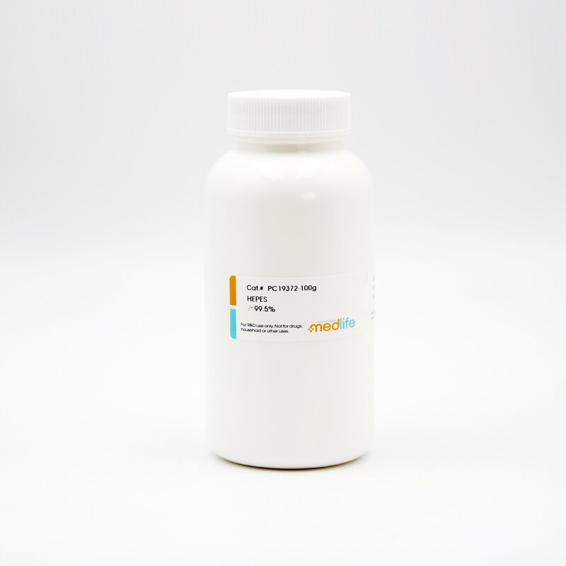 HEPES 是一种非挥发的两性离子化学缓冲剂,广泛应用于细胞培养。HEPES 在 pH 值为 6.8 至 8.2 时为有效的缓冲液。HEPES 也是溶酶体生物发生的有效诱导剂。