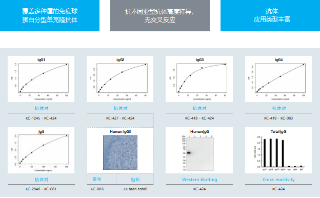 抗体分型是确定抗体同种型、亚型和轻链类型的关键过程。不同分型的抗体功能各异, 与病理和生理状态的相关性也不尽相同。特异性识别不同抗体亚 型是许多研究的基础,其应用范围包括:IgG4 相关疾病、自身免疫性疾病 、IgG 亚类缺陷病、超敏反应、感染类疾病。