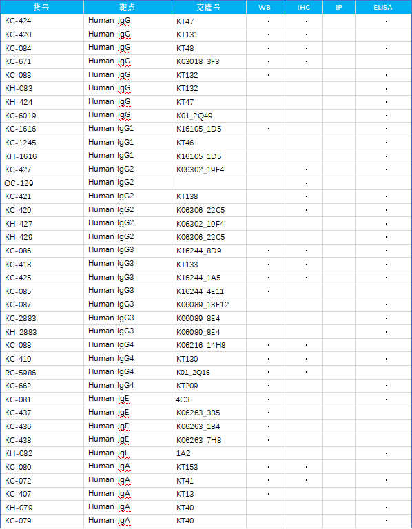 爱博生 Absea? 提供全套优质的免疫球蛋白分型单克隆抗体产品,帮助客户快速且特异性区分抗体亚型。我们的产品线包括以下同种型和轻链的单抗: IgG1、IgG2、IgG3、IgG4、IgA、IgE、IgM、Kappa 和 Lambda 等。