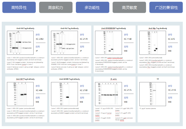2.多技术平台兼容性 标签抗体支持Western Blot(WB)、免疫沉淀(IP)、流式细胞术等多种实验类型。例如,V5标签抗体可用于染色质免疫沉淀(ChIP),而GFP标签抗体结合荧光特性实现动态蛋白追踪。
