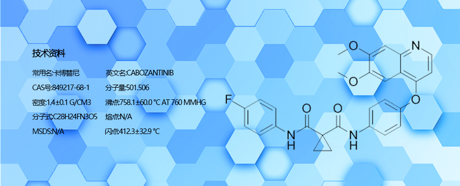 中文别名:博卡替尼 | 卡博替尼 | N-[4-[(6,7-二甲氧基-4-喹啉基)氧基]苯基]-N'-(4-氟苯基)-1,1-环丙烷二甲酰胺 | 卡赞替尼