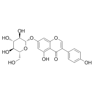 7-(b-D-Glucopyranosyloxy)-5-hydroxy-3-(4-hydroxyphenyl)-4H-1-benzopyran-4-one 5-Hydroxy-3-(4-hydroxyphenyl)-7-{[(2S,3R,4S,5S,6R)-3,4,5-trihydroxy-6-(hydroxymethyl)tetrahydro-2H-pyran-2-yl]oxy}-4H-chromen-4-on Genisteol 7-monoglucoside Genistin 5-Hydroxy-3-(4-hydroxyphenyl)-4-oxo-4H-chromen-7-yl-β-D-glucopyranoside 4H-1-Benzopyran-4-one, 7-(β-D-glucopyranosyloxy)-5-hydroxy-3-(4-hydroxyphenyl)- 4',5,7-trihydroxyisoflavone-7-D-glucoside Diadzin MFCD00016883 4',5,7-Trihydroxyisoflavone 7-glucoside GLUCOSYL-7-GENISTEIN Genistein-7-glucoside genistein 7-O-beta-D-glucoside Genistein 7-O-β-D-glucoside Genistein, 7-O-β-D-glucoside genistein 7-O-glucoside 5-Hydroxy-3-(4-hydroxyphenyl)-4-oxo-4H-chromen-7-yl β-D-glucopyranoside Genistein 7-O-b-D-Glucoside Soybean Extract 5-Hydroxy-3-(4-hydroxyphényl)-7-{[(2S,3R,4S,5S,6R)-3,4,5-trihydroxy-6-(hydroxyméthyl)tétrahydro-2H-pyran-2-yl]oxy}-4H-chromén-4-one Genistein-7-O-β-D-glucopyranoside Genistine Genistein glucoside Genistoside Genistein, 7-β-D-glucopyranoside 5-Hydroxy-3-(4-hydroxyphenyl)-7-{[(2S,3R,4S,5S,6R)-3,4,5-trihydroxy-6-(hydroxymethyl)tetrahydro-2H-pyran-2-yl]oxy}-4H-chromen-4-one 4H-1-Benzopyran-4-one, 7- (β-D-glucopyranosyloxy)-5-hydroxy-3-(4-hydroxyphenyl)- Genistein-7-O-glucoside Genistein 7-glucoside