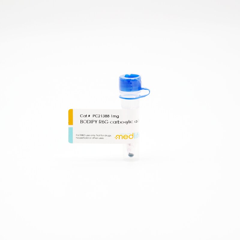 Medlife的BODIPYR6G发黄色荧光,类似于罗丹明6G(R6G)。和其它硼二吡咯染料一样,BODIPYR6G量子产率,消光系数,荧光稳定性很好,并且荧光属性对溶剂的极性,pH及溶剂种类不敏感。 BODIPYR6G分子中性,不带电荷,分子量较小,较疏水,可透过细胞膜,常用于透膜性荧光探针,标记细胞膜,磷脂等。BODIPYR6G也可以用来标记蛋白,多肽,纳米粒等生物材料,用于荧光显影,荧光极化(fluorescencepolarization)检查,双光子实验等。 性状:深褐色固体;溶解度:易溶于甲醇,DMF,DMSO等有机溶剂;标记对象:氨基;保存:避光,干燥,-20℃;相关分类:BODIPY系列->BODIPYR6G 查询关键词:“174881-57-3,BODIPYR6G羧酸,BODIPYR6Gcarboxylicacid,PC21388,Medlife”。